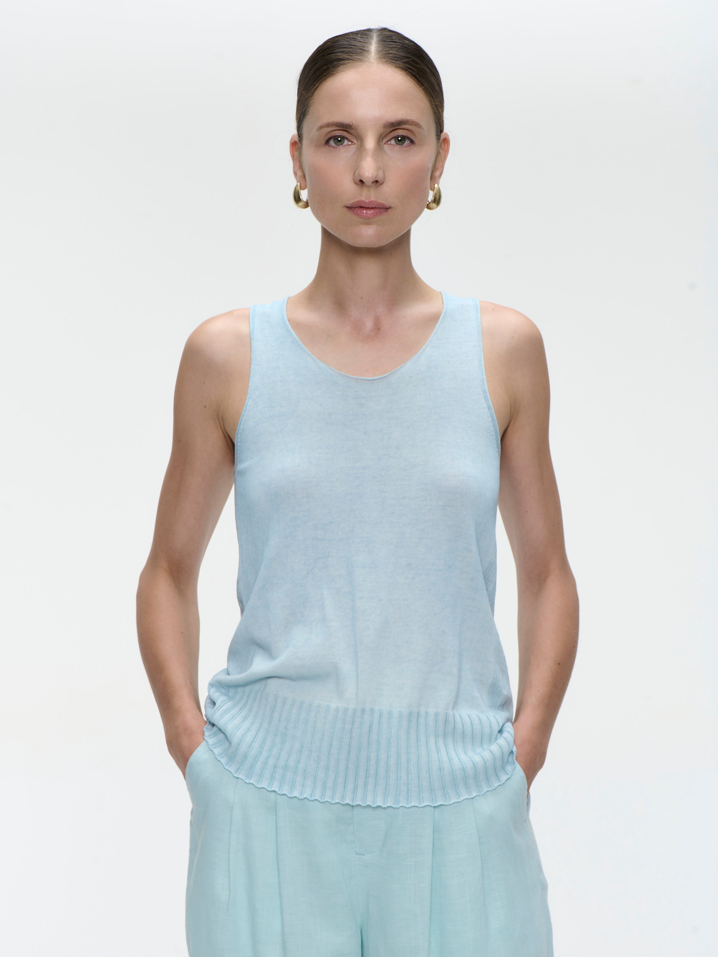 The Valentino Cotton Dyed Top by Jane Lushka is the epitome of effortless summer elegance. Made in Italy from 100% premium cotton, this lightweight knit features a garment-dyed finish for a rich, natural tone and soft texture. The sleeveless design and relaxed fit make it a versatile choice — perfect for pairing with linen trousers or flowing skirts for a fresh, easy look.