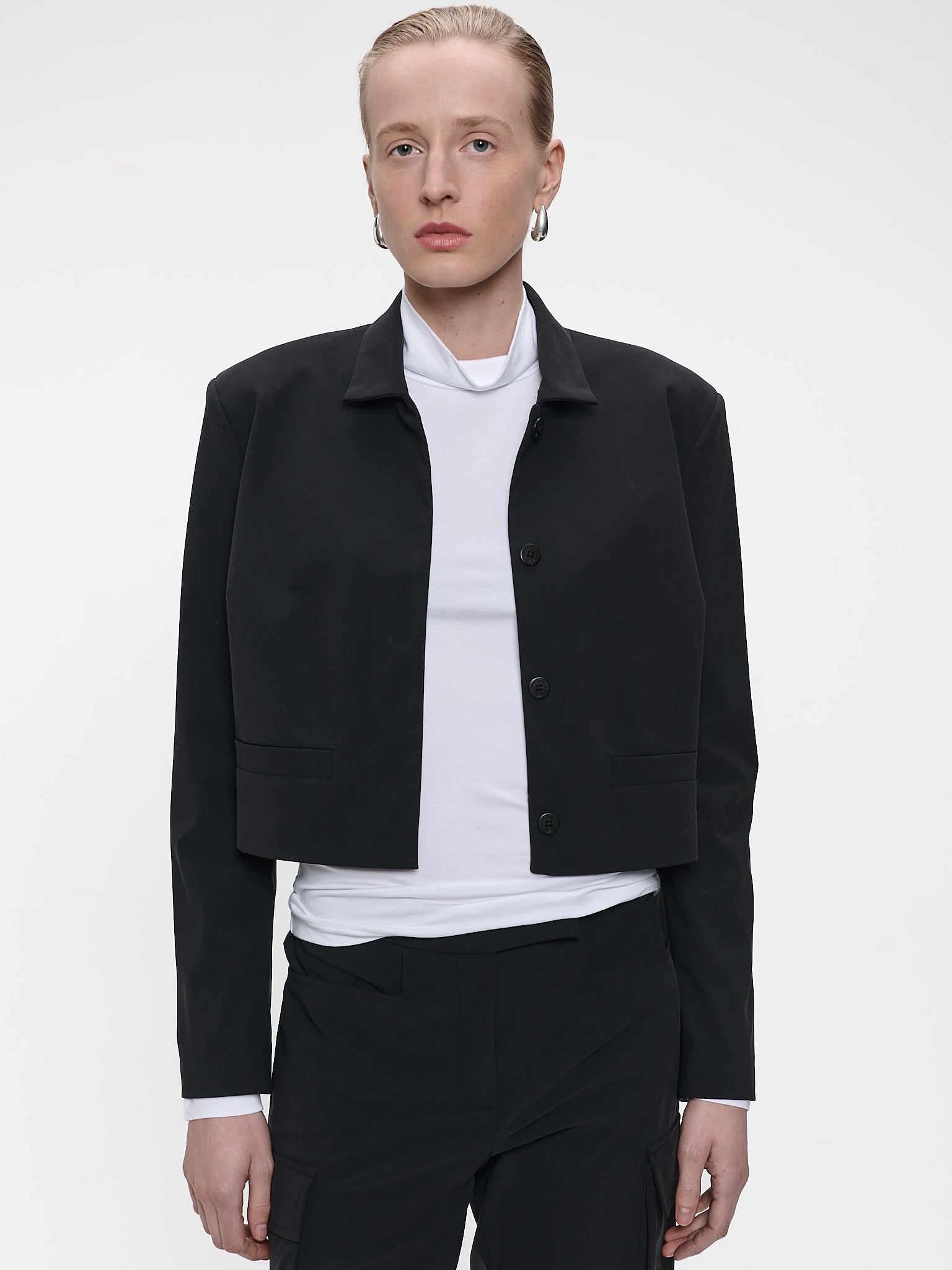Sleek and smart, the Velda blazer combines timeless tailoring with modern minimalism. Crafted from stretchy technical jersey with a soft brushed finish, this cropped jacket offers structure with a feminine twist. The clean front, subtle seam details and sharp shoulders create a refined silhouette that complements any outfit.