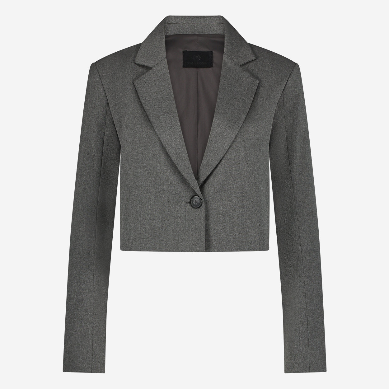 Hunt Blazer: A must-have for every fashion rebel, the Hunt Blazer combines style and attitude effortlessly. Crafted from a poly viscose blend, this blazer features a short tailored silhouette that exudes confidence. Whether you're at work or out on the town, this blazer is sure to make a statement. The model is 1,79 cm tall and wearing size S.