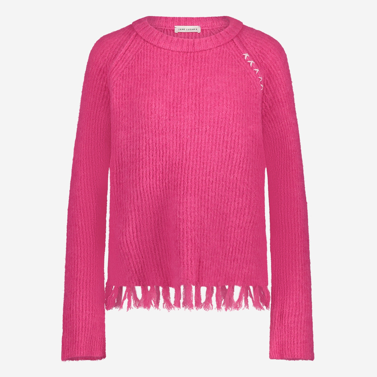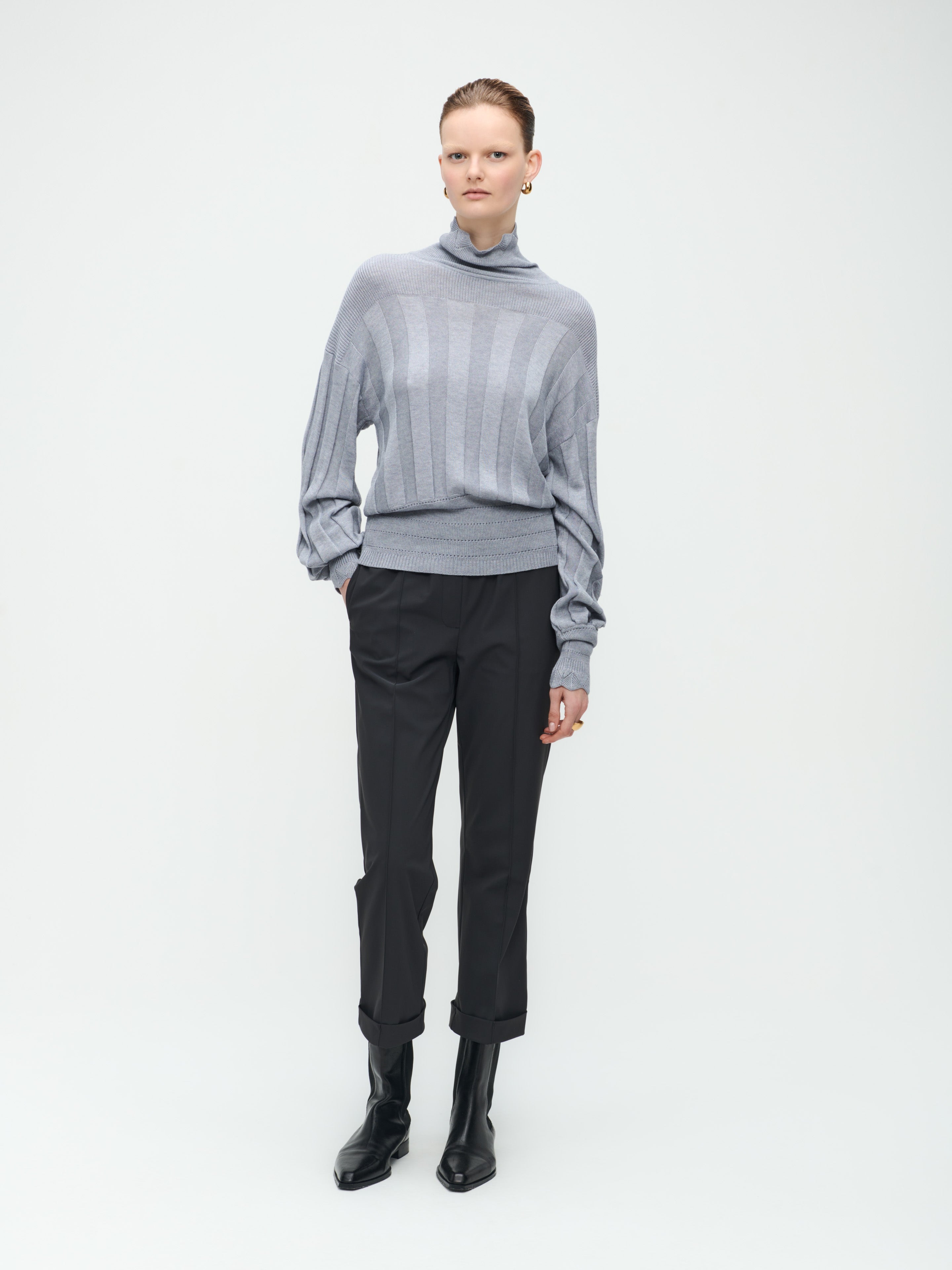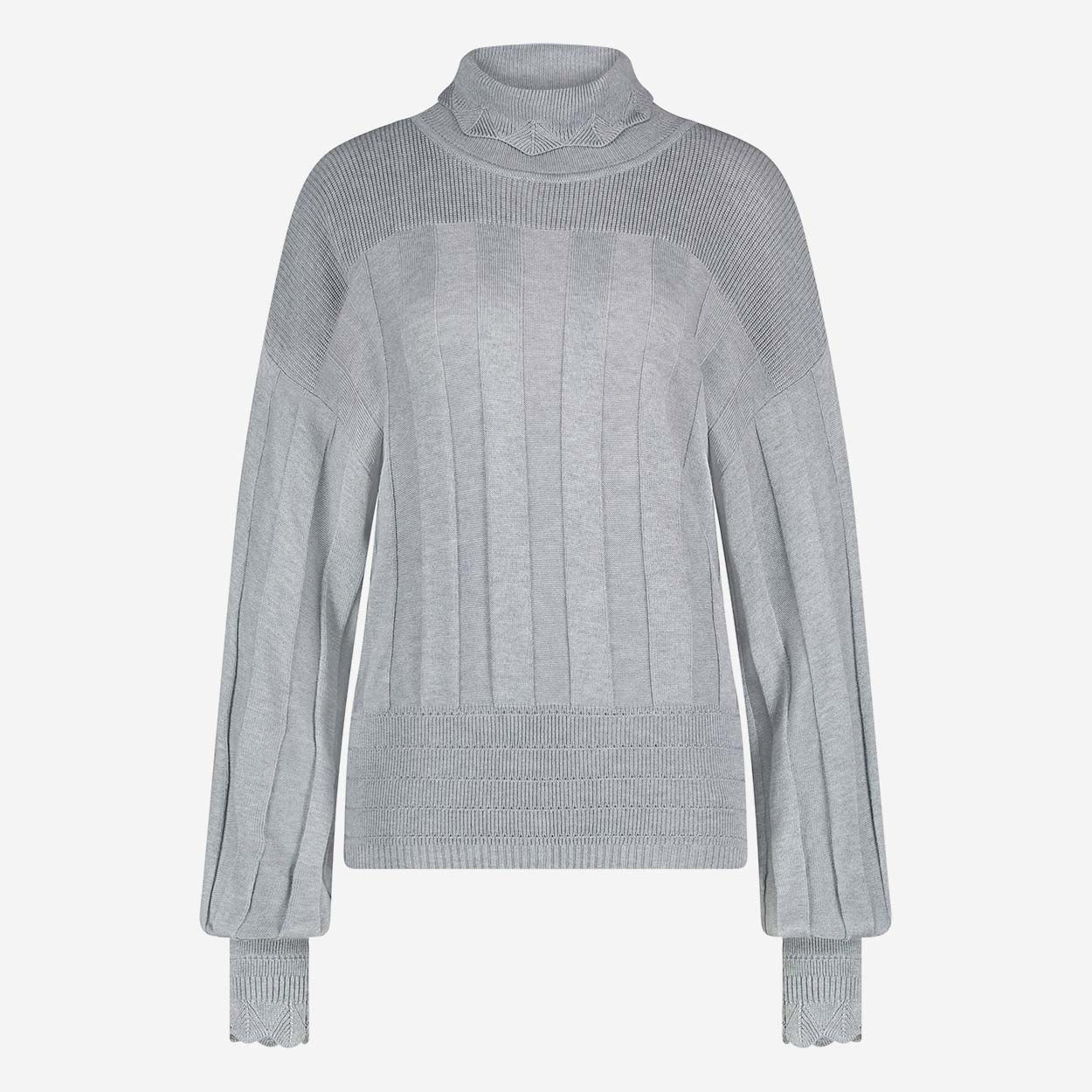 Keathley Pullover: Elevate your style with the Keathley Pullover, featuring playful pointelle details and rib-knitted panels. Crafted from a premium blend of viscose and wool, this pullover ensures luxurious comfort and warmth. The elegant balloon sleeves add a touch of sophistication, making it perfect for both casual and refined occasions.