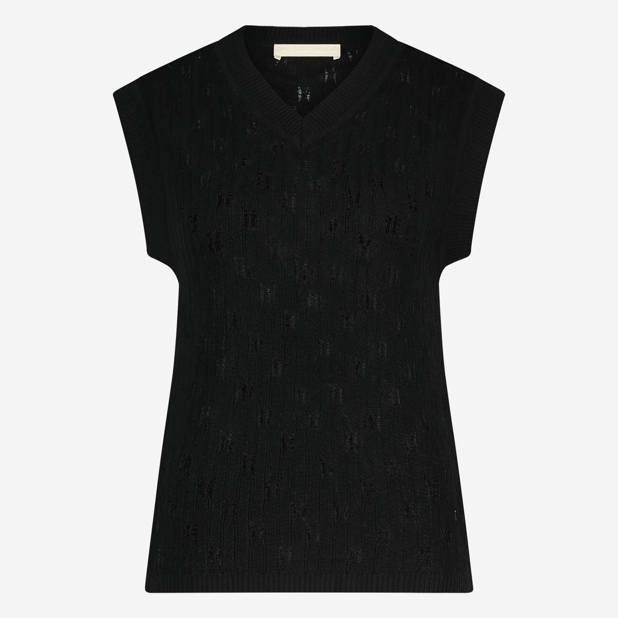 Wexford Holes vest: Discover artisanal elegance with this handcrafted vest, featuring structural knitting and exquisite hand details. Perfect for enhancing any outfit with a touch of unique craftsmanship.