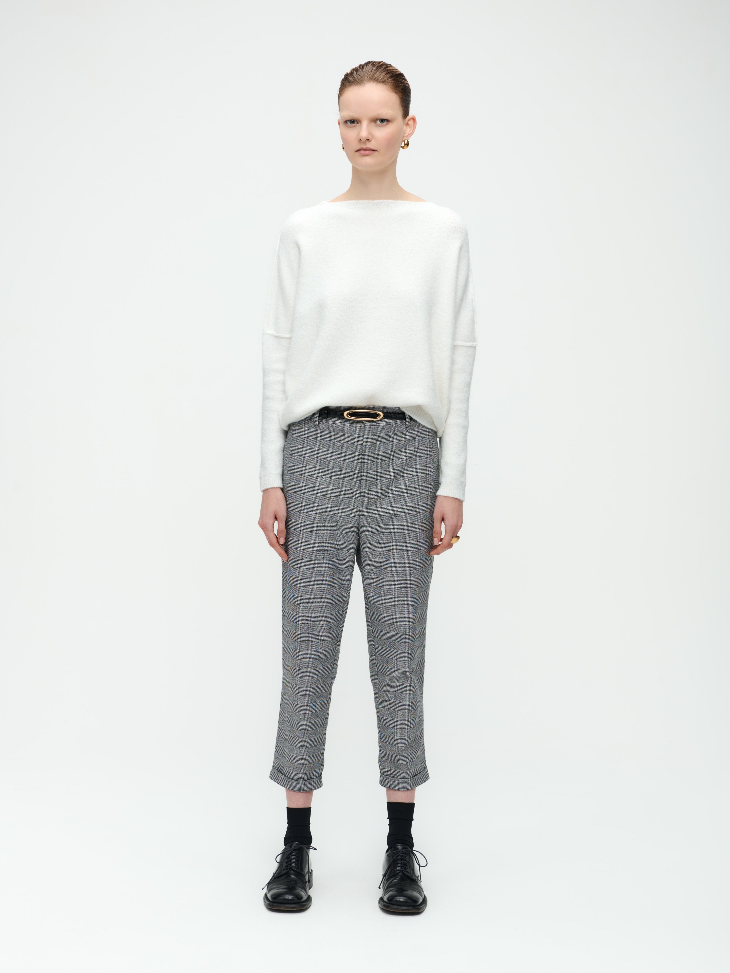 Lena Pants: Embrace contemporary chic with the Lena Pants, crafted from viscose poly with a checkered structure. The chino fashion style and relaxed fit offer a perfect blend of comfort and modernity.