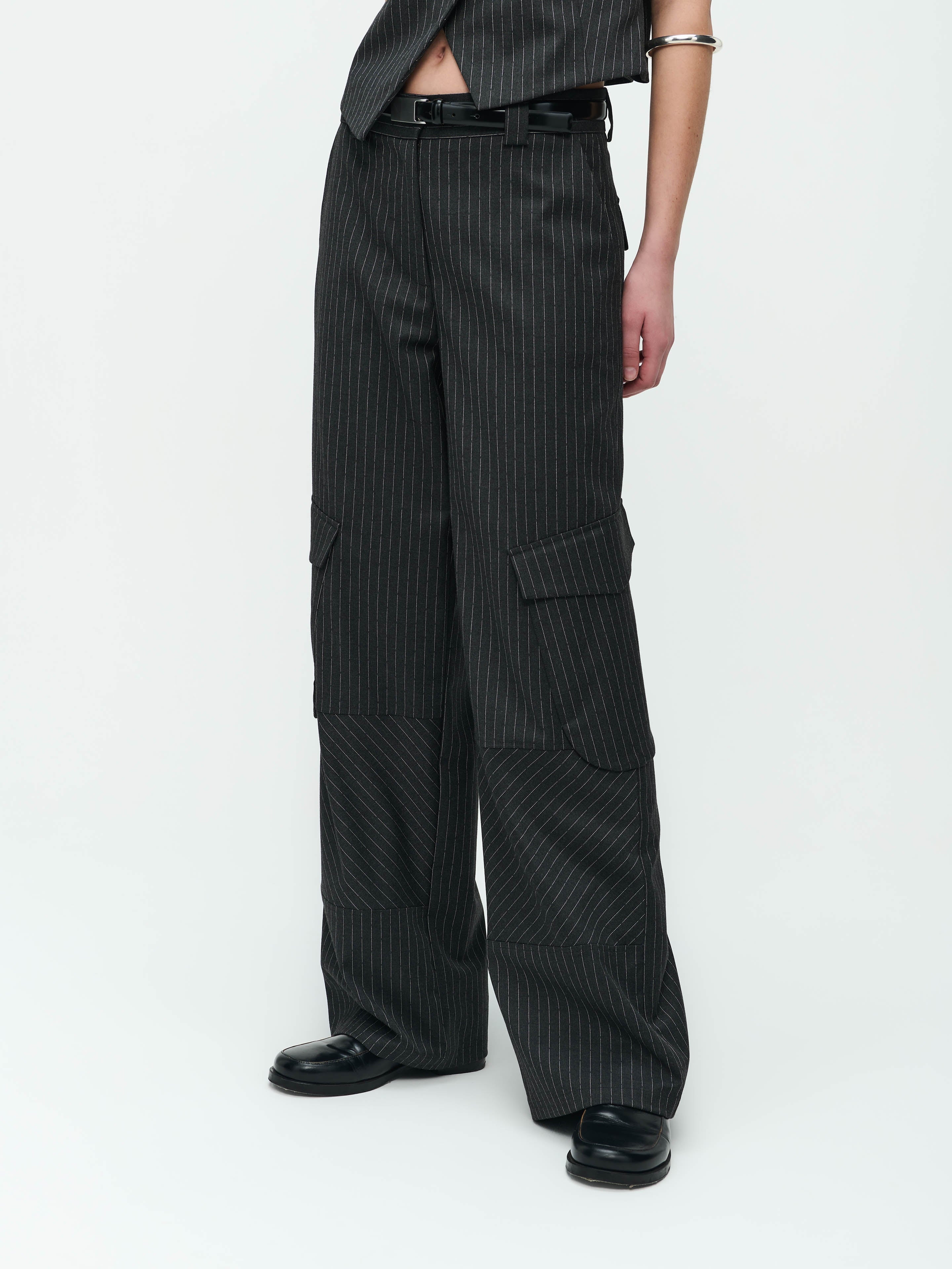 Trend Pants: Elevate your style with our poly viscose cargo pants, featuring a sleek line shiny structure for a touch of sophistication.